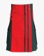 Black and Red Two-Tone Hybrid Utility Kilt is designed for stylish man to express their individuality with a unique Scottish trendy style. It is a remarkable garment that offers comfort and practicality. It comes with a customization option that allows you to wear a kilt of your choice in your favourite colour and the perfect size. Black and Red Hybrid Kilt comes with an attractive front apron with black stripes designed vertically that make the apron more attractive. Red buckle straps with eyelets on the right side for kilt adjustments up to 1-2 inches. Snap buttons are used on the top-front waist for kilt fastening. It has a black pleated design on either side for freedom of movement and adds a traditional touch. Two-tone detachable pockets on either side are used to carry your hand-hold items safely with the help of a button flap. Black and Red Two-Tone Hybrid Utility Kilt is crafted with 100% pure Cotton fabric, ensuring comfort and durability. To make it accessible for every budget, we offer this kilt in various sizes at a reasonable price. It is suitable to wear at Casual parties, Formal gatherings, and Scottish Wedding events. Order now to elevate your wardrobe with its tremendous appearance.