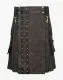 Black Denim Kilt with Leather Straps is a masterpiece of our craftsmen, which features a unique design with modern features. It is stylish and adds a contemporary twist to your outfits. If you are looking for an amazing kilt for your outdoor activities, this kilt can be a good choice. Black Denim Kilt features a flat apron decorated with a pair of rivets and leather straps on one side. The addition of the leather straps makes it attractive and gives it a sleek and trendy appearance. Its belt loops are also made of leather, while D-rings and lobster clasps are connected to each loop for external attachments. It comes with stylish pockets on both sides, allowing you to carry essential items like a Cell phone, Wallet, and Keys. These pockets have a flap with a buckle strap, which secures your items from losing or slipping out of the pocket. It has a pleated pattern that shows your association with the Scottish culture and provides freedom of movement during your activities. Black Denim Utility Kilt is fabricated with high-quality denim jeans. We use rust-free hardware materials during its manufacturing to deliver a fabulous kilt. It is suitable to wear at Gaming events, Casual outings and Formal gatherings. It is available at a reasonable price in various sizes and colours. Order now to make a perfect match with your apparel.