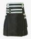 Black Fashion Utility Kilt with Nylon Straps is a new innovative design kilt that adds a touch of modernity and utility features. It is perfect for the modern individual who desires to make a striking statement at their fashionable events. This kilt has an attractive front apron with nylon straps attached to an O-ring. Button straps are connected with an O-ring for kilt adjustment. At the same time, traditional pleated panels are stitched on either side for easy movement on various occasions. Black Fashion Utility Kilt has two large flap cargo pockets designed on either side to store your hand-held essentials easily. The flap is decorated with o-rings, nylon straps, and snap buttons to secure your items safely. Fastening buttons are used on the top front waist for kilt closure. Decorated flaps are styled on the back side for a charming look. Our trained artisans make this Black Fashion Utility Kilt with Nylon Straps with durable pure cotton fabric, which is easily washable and used for a long time. Rust-free hardware material is used in this kilt. You can select your colour on cotton fabric and customise your size using our online store. So place your order now.