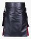 Black Leather Rainbow Kilt with Cotton Pleats is specially designed for those who want to pay homage to their gay community in a modern way. It is functional and fashionable, making modern individuals look unique and attractive. We offer this kilt in your exact size and various colours. Black Leather Rainbow Kilt features a flat apron that falls perfectly downwards. It comes with leather straps on both sides of the waistline for a perfect and comfortable fit. It has large detachable pockets on either side, styled with black leather, making this kilt more attractive and a unique piece of Scottish attire. These pockets offer enough storage for everyday essentials like Cell phones, Wallets, and Keys. A rainbow-coloured cotton pleated pattern is made on the back, providing ease of mobility and showing your attachment to the Highlander culture. Black Leather Rainbow Kilt with Cotton Pleats is crafted with 100% pure Cotton. It is handmade, and you will get a new kilt that will satisfy your specifications. It is suitable for various occasions, whether you are heading a casual party or a wedding event, and this kilt will make you look attractive and fashionable. Order now to purchase this kilt at a reasonable price in various colours.