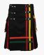 Black Rainbow Hybrid Kilt with Large Pockets is a newly designed kilt that blends a contemporary and modern look to your garment. It is an ideal choice for kilt enthusiasts to express their love for Scottish traditions in a new, stylish way. Black Rainbow Hybrid Kilt features an attractive front apron styled with colourful straps. It has three nylon straps connected with rectangular rings to fasten the front apron. The pleated pattern of the rainbow colours shows its attachment to the rich Scottish culture and gives you easy movement during various casual and formal functions. Fastening snap buttons on the top front waistline area provide a perfect and secure fit. It has features of large pockets with flaps styled with different coloured straps to give it a fashionable look. These pockets offer enough storage for your belongings like a Cell phone, Wallet, and Keys. It is handmade, and you will get a new kilt that matches your needs. Black Rainbow Hybrid Kilt with Large Pockets is fashioned with 100 % Cotton fabric that assures its comfort and durability for life. Whether you are going to a Casual party or a Scottish wedding event, this kilt is a perfect choice. Order now to buy this kilt at a fair price in your demanding size.