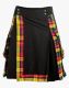 Black with Buchanan Tartan Pleats Hybrid Kilt is perfect for those who appreciate the blend of contemporary style and Scottish traditions. It is a stylish piece of Scottish attire that allows you to celebrate Scottish pride fashionably. It is available in various combinations, so you can select from the dropdown to make a perfect contrast. This kilt has the attractive feature of a flat, plain front apron, While the Buchanan tartan straps are designed on the right and bottom corners of the front apron. It has snap buttons on the front waistline that fasten the kilt properly. The tartan and cotton pleated pattern sewn on the back of a kilt highlights its resemblance with the ancient Highlander design. Its belt loops are cotton, and D-rings are attached to each belt loop for external attachments. It has two-tone flap pockets that are a combination of both cotton and tartan fabrics. These pockets provide enough storage for your everyday essentials to carry or store. Black with Buchanan Tartan Pleats Hybrid Kilt is fabricated with high-quality Cotton and Acrylic wool tartan fabric. Its quality material assures its durability and comfort. It is suitable to wear at Traditional festivals, Casual outings and Formal gatherings. Order now to get this kilt at a fair-minded price in your desired sizes.