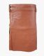 Brown Leather Kilt with Buckle Straps is a fantastic addition to a versatile and stylish wardrobe. It adds a touch of individuality to your outfits for a classy and attractive look. It comes with a customization option, so you have an opportunity to wear a kilt that suits your personality and taste. Brown Leather Kilt is sewn in a unique pattern with a simple front apron. To fasten the kilt perfectly, it features snap buttons on the top-front. Two buckle straps are made below the waistband area, which offers a little bit of comfortable adjustment. It comes with large pockets with button flaps on either side. These pockets allow you to carry your everyday essentials like a Cell phone, Wallet, and Keys. A pleated design around the back provides freedom of movement during your hard jobs and adds a traditional touch to make it resemble the Highlander style. Brown Leather Kilt with Buckle Straps is crafted with 100 % pure leather. We offer it in various sizes and colours at a low price so anyone can access it. It is suitable to wear at Irish and Scottish Wedding events, Casual outings, and Formal gatherings as well. Order now to make your events memorable with its luxurious appearance.