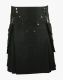 Fashion Black Utility Kilt with Detachable Pocket is a versatile and costume-made kilt, especially for those who look different. Its attractive look makes your personality more appreciable and eye-catching. This kilt is made in a lightweight that makes it the best choice to wear on casual and formal occasions. Black Utility Kilt has a plain front apron with studs. At the same time, pleated styles are on the side and back of the kilt for classic and easy movement. Fastening buttons are on the top front waist for kilt closure and adjustment. Eyelets are decorated on the loops for holding the belt and making the waist stylish. Fashion Black Utility Kilt comes with detachable pockets to carry your essentials. These pockets are hung with the nickel clip and attached to the D-ring. We use pure 100% drill jeans cotton fabric with quality and rust-free hardware material in this kilt. You have the best option to select the fabric and hardware colours. Our main aim is to deliver a quality product to our lovely customers at a discounted price. So order it now.