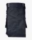 Black Denim Utility Kilt has a simple flat apron with snap closures on the front waistline. It allows you to have a perfect and comfortable fit. Buckle straps are made below the waistband, which offers comfortable adjustment for the wearers. It features flap pockets on either side of a kilt, which provides enough storage for your everyday essentials like a Cell phone, Wallet, and Keys. It has a pleated pattern on the back, which shows its attachments with the Highlnader style and helps with easy movement. A button flap is also made on the back, which adds a modern touch to its classic design. Black Denim Kilt is crafted with pure Denim jeans, ensuring longevity and durability. It is handmade, and our craftsmen prepare it with years of experience to deliver it according to the customer’s requirements. It would be an excellent option to wear at Irish and Scottish Weddings, Casual outings, and Formal gatherings. Order now to have an experience with our high-quality, low-priced kilt.