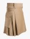 Handmade Khaki Utility Kilt is designed for modern men to express their individuality with a unique and attractive style. It is a remarkable garment that offers style, comfort, and practicality. We offer this kilt in a customization option that allows you to wear a kilt of your choice in your favourite colour and the perfect size. Khaki Utility Kilt is sewn in a unique style with a simple and decent plain flat front apron. It has buttons on the front waistline for a perfect, secure fit. Khaki straps with eyelets on the right side for kilt adjustment through a rust-free buckle. Large flap pockets on both sides allow you to carry your daily used items like a Cell phone, Wallet, and Keys while traveling or attending an event. It has a pleated design that is traditional and helps in easy movement. Handmade Khaki Utility Kilt is made with the highest-quality cotton fabric and rust-free hardware. It is durable, washable, and valuable for a long time. This lightweight kilt is easily wearable for various events and functions for a classy look. Our priority is to provide a product that is affordable and delivered on time, so order it now.