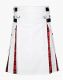Lautremont White and Wallace Tartan Hybrid Kilt is a versatile modern traditional kilt that attracts attention for its unique colour combination. It adds a contemporary flair to your outfits to showcase your unique personality. This kit comes with a simple and decent plain white apron, while Wallace tartan pleats are sewn on either side for easy movement and give some traditional look. The White and Wallace Hybrid Kilt comes with large flap cargo pockets on both sides for storing your hand-held items safely with the help of snap buttons. Leather button straps are on both sides to adjust and fasten the kilt. D-rings are attached to the belt loops for hanging small items. It has a customisation option, so you can get a kilt designed according to your specifications. White and Wallace Tartan Hybrid Kilt is fashioned with 100 % real cotton and tartan fabric, which ensures its comfort and durability. You can purchase it at an affordable price in your desired size. It is ideal for Casual parties, Scottish Wedding events, and Formal gatherings. Order now to make fashion statements in your trending events.
