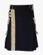 Mens Black and Khaki Two-Tone Utility Kilt is a newly designed kilt that offers a perfect combination of style and functionality. It makes you look modern and allows you to make a fashion statement at any event. You can purchase this kilt in various colours and sizes at an excellent price. Black and Khaki Two-Tone Kilt has a unique design that captures the attention of every person. It has a flat apron that is adorned with a khaki strap and rivets, making it more trendy and eye-catching. It has snap closures on the front waistline to fasten it perfectly. It comes with buckle straps below the waistline area for a little bit of adjustment. Large flap pockets are styled on both sides of the kilt, allowing you to stow your belongings like a Cell phone, Wallet, and Keys. A pleated pattern around the back adds a classic twist to its design and provides ease of mobility during your tough adventures. Mens Black and Khaki Utility Kilt is crafted with top-quality Cotton, ensuring its longevity and comfort as well. It comes with handmade features and we always deliver quality products that satisfy the customer's needs. You can wear this fashionable kilt at Irish and Scottish weddings, Casual outings, Formal meetings, and Special parties. Order now to add a contemporary twist to your dressing.