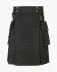 Men's Black Denim Kilt with Detachable Pockets is designed for those who want to meet contemporary fashion with its comfort and functional elements. It comes with all the necessary features that a modern man looking for a kilt to make a unique fashion statement. It comes with a customization option so that you can buy a kilt according to your specifications. Men’s Black Denim Kilt is sewn in an amazing pattern with a plain front apron. It comes with snap buttons on the front waistline, allowing you to have a perfect and secure fit. It has belt loops, and each is adorned with D-rings and eyelets. Detachable pockets on either side of a kilt are hanging with the help of D-rings and nickel hooks. These pockets offer extra storage for your personal belongings like a Cell phone, Wallet, and Keys. A pleated design is made around the back that adds a traditional look to its design. All the hardware material used during its fabrication is rust-free and of exceptional quality. Black Denim Kilt with Detachable Pockets is crafted with pure Denim jeans, ensuring its durability. We offer it in various sizes and colours at an excellent price. It is ideal to wear at Casual outings, Formal gatherings, and Wedding events. Order now to have an experience with this fantastic garment.