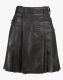 Mens Black Leather Kilt with Side Laces Design is a newly designed kilt that is specially designed for a trendy and modern man. It has a royal outlook that makes it more attractive and stylish. Its fashionable design is also a symbol of Scottish pride and honour. This kilt has an attractive front apron with V-shaped studs, giving it an elegant look. It has a pleated design on either side for comfort and freedom of movement. Black Leather Kilt is designed with a lace style for kilt adjustment. Fastening buttons are used on the top-front waist for kilt closure. Two utility pockets on the back side carry small items like cell phones, wallets, etc. Belt loops are on the waist area to hold the belt and make the waist a perfect fit. It comes with a customization option, so you will get a kilt that will fit you according to your preferences. Mens Black Leather Kilt with Side Laces Design is crafted with original leather that assures its durability and longevity. All the hardware material used in this kilt is of good quality. It is suitable for wear at casual parties, Scottish weddings, and formal gatherings. Order now to get this versatile kilt at a fair-minded price.