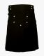 Mens Black Utility Kilt with Studded Apron is a versatile garment that adds elegance to your outfits. It looks attractive due to its innovative design, which makes you look unique and fabulous. It comes in various colours and sizes, so anyone can purchase it in the colour that suits their personality and taste. Mens Black Utility Kilt features a flat decorated apron. The studs used are rust-free and of good quality. It has snap buttons on the front waistband, which provides a perfect and comfortable fit. Two buckle straps are styled below the waistline area, which are also used for fitting. It comes with flap pockets on both sides that offer enough storage for your everyday essentials like a Cell phone, Wallet, and Keys. It has a pleated rear resembling Highlander culture and helps in movement during games or hiking. A button flap and a trouser pocket on the back give it a stylish look with functional features. Black Kilt with Studded Apron is fashioned with top-quality cotton material. It is handmade, and you will get a new kilt with fine stitching and exceptional craftsmanship. Whether you are attending a casual party or a wedding event, this kilt will add a modern twist to your outfits and make you unique from others at any event. It is also suitable for family gatherings and outings with friends. Buy it at an affordable price to perfectly match your outfits.