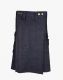 Men's Blue Denim Kilt with Red Outer Thread is an eye-catching garment that would be a favourite choice of many kilt enthusiasts due to its distinctive design. Its red outer thread makes an interesting combination with the blue denim fabric. When you pair it with your outfits, it creates a unique look that reflects your individual style. Men's Blue Denim Kilt features exceptional craftsmanship with its classy appearance. Its front is kept simply flat, while a pleated pattern on the back highlights its Highlander look. It comes with studs on either side of the front waistline, which allows wearers to have a better and more secure fit. It has pockets on both sides that look stylish and provide extra space for valuable items like a Cell phone, Wallet, and Keys. Blue Denim Kilt with Red Outer Thread is made with top-quality denim jeans, ensuring comfort and longevity. We offer this kilt in various colour options in your desired size at a reasonable price. Whether you are travelling or attending a wedding event, this kilt gives you an awesome look that captures everyone's attention towards your attire. It is also suitable for Casual events and Formal gatherings. Buy it now.