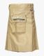 Men's Khaki Utility Kilt with Front Pocket is a new stylish garment for a modern man in the Scottish traditional dress. It is designed for people who want utility features and a classic style. Khaki Utility Kilt has an attractive front apron with a Detachable pocket. Snap buttons are used on its top front waist for a perfect and secure fit. Square rings are connected with each belt loop for functionality to attach lightweight items during your work routine. Pleated designs are stitched on either side for freedom of movement and to make a traditional look. Classic Strap is on the left side for a little bit of adjustment. Men's Khaki Utility Kilt has two detachable pockets attached to the front apron. This pocket allows you to store your essentials like Cell phones, wallets, and Keys. You can remove pockets if you don't want to go with them. This kilt is specially fabricated with pure, durable drill jeans cotton fabric and rust-free hardware material. Wearing it at Scottish festivals, weddings, and casual functions is best. We delivered this kilt at a fair price in your required sizes. So order now and get this kilt in your required sizes.