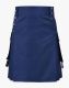 Men's Navy Blue Fashion Utility Kilt is designed for those who are seeking a unique and modern kilt in their functions. This kilt is ideal to dress up in a stylish kilt with its functional features. This kilt comes with a simple plain front apron, while pleated designs are sewn on either side for freedom of movement and to give a traditional touch. Navy Blue Fashion Utility Kilt has small button straps on the right corner for kilt adjustment. Pockets are styled with large buckle straps with eyelets on both sides. These pockets provide ample space to carry your essentials. Stylish silver chains are hung on the left for a modern, charming look. Fastening buttons are used on the top front waist for kilt closure. D-rings are attached to these loops for hanging small items like keys and chains. Belt loops are designed on the waist for easily holding and wearing a belt. Men's Navy Blue Fashion Utility Kilt is crafted with high-quality cotton fabric and durable material. We offer a customization option so that you can purchase a kilt at a reasonable price. It is suitable for Scottish Wedding events, Casual outings, and Family gatherings. Order now to add a trendy design to your dress.