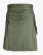 Men's Olive Green Hiking Utility Kilt Cotton Straps is a fashionable garment that allows you to make your look more special at any event. It is a versatile kilt that adds a contemporary twist to your events with this unique white thread. This kilt comes with a decent front apron with studs that make it stylish. Its fasting buttons are used on its top for kilt closure. It has a pleated pattern around the back that is sewn in white cotton and adds a traditional touch to its trendy look. Olive Green kilt comes with large pockets on both sides for storing your items safely with the help of a snap button. One additional flap with studs on the right side for an attractive look. Buckle straps are decorated with eyelets on the right sides for a little bit of adjustment. Loops features are on the waist area for holding the belt and making the waist a perfect fit. If someone is looking for a classy garment that offers functional features, this kilt is an ideal choice for those people. It comes in various colours so that you can make a contrast of your choice. Men's Olive Green Kilt is uniquely manufactured with pure cotton fabric with rust-free hardware material, which is durable and useful for a long time. Place your order now and get this versatile kilt at an excellent price.