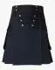 Modern Black Denim Kilt with Red Outer Thread is a versatile garment with a unique and traditional look. It is attractive due to its red outer thread to make a bold statement while paying homage to Scottish culture. This kilt has a beautiful front apron with studs that create a charming look. It features a pleated design on the back of a kilt, which shows its association with the Highlander style. Modern Black Denim Kilt has lace styles on its back for a royal look and gives a little adjustment that is easy to wear. It has snap buttons on the top front, giving wearers a perfect and secure fit. Its belt loops are made of denim fabric to add functionality to its design. It comes with large flap pockets on both sides. These pockets provide extra storage for your daily used items like Cell phones, wallets, and Keys. Modern Black Denim Kilt with Red Outer Thread is crafted with top-quality denim jeans fabric. It ensures the kilt’s comfort and durability. We offer it at a reasonable price in all sizes to make it accessible for everyone. Wear it at traditional events, casual outings, and formal gatherings. Order now to get a kilt at your doorstep.