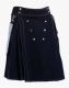 Modern Black Utility Kilt with Detachable White Pockets is a newly designed kilt that offers a perfect combination of style, comfort, and functional elements. It is also an ideal choice for a fashionable man to look unique and attractive. Its fantastic colour combination allows you to make a perfect match with any of your favourite outfits. Modern Black Utility Kilt features a decorated flat apron that gives it a stylish appearance. It has a white outer thread that makes an amazing contrast with its prominent black and provides you with a unique kilt that captures everyone’s attention. To fasten the kilt perfectly, it has snap buttons on the front waistline. It comes with belt loops by which D-rings are connected that allow you to hang pockets or other lightweight items like Keys and Chains. It has pockets that are detachable and have button flaps. These pockets provide enough storage for your valuable essentials like a Cell phone, Wallet, and Keys. A pleated pattern is made around the back, which helps in easy movement and also expresses your attachment to the Highlander culture. Black Utility Kilt with White Pockets is manufactured with top-quality Cotton, ensuring its longevity and comfort. It comes with a customization option, so you can purchase it in your favourite colour combinations at an affordable price. Whether you are planning to attend a Wedding party or a Music festival, this kilt would be a perfect choice for these occasions. Order Now.