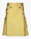 Modern Khaki Utility Kilt with Pockets is designed to express your unique style while providing you with its practicality. It is also a perfect choice for those who want to add some unique Scottish flair to their personality. It is handmade and we also offer a customization option, so you can purchase this kilt according to your specifications. Modern Khaki Kilt features a detachable apron that has studs that keep the apron in its exact place. It has snap closures on the top front for a perfect and comfortable fit. Belt loops are made by which D-rings are connected on the front which allows you to attach lightweight items like keys and chains. It comes with slant and flap pockets on either side, allowing you to carry your valuable items like a Cell phone, Wallet, and Keys. It has a pleated rear that highlights your resemblance to ancient Scottish traditions and also provides freedom of movement during your tough adventures. Khaki Utility Kilt is fashioned with exceptional quality Cotton. Our main motive is to deliver new quality kilt so you will get a kilt that matches your current needs. It is accessible in your size at a low price. It is suitable for both Formal events, Casual parties, and during Outings with friends. Order now to celebrate the Scottish pride in style.