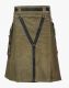 Olive Green Utility Kilt with Detachable Pockets is designed for modern people who want new trendy designs in their garments and to show their personality uniquely. Its traditional functional design makes the kilt more attractive and eye-catching. Olive Green Kilt has a decent and beautiful front apron with nylon straps designed in a Y-shaped. Fastening buttons are used on the top front waist for kilt closure. On either side, traditional pleated designs are stitched on the back for freedom of movement on various occasions. Olive Green Utility Kilt comes with detachable pockets on both sides to store your household items like wallets, cell phones, etc. These pockets are attached with nickel clips and hang with the side D-ring. Nylon straps with a D-ring are designed in these pockets for a charming look. Belt loops are styled with eyelets that hold the belt and make the kilt an accurate fit. It is available in various colour options, so you can get a kilt in your favourite colour that matches your personality. Olive Green Utility Kilt with Detachable Pockets is specially crafted with pure cotton fabric with unique styling. This kilt is the best option for traditional functions and casual events. Place your order now and buy this kilt at the cheapest price.