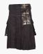 Pleated Black Cotton Utility Kilt with Leather Belts is a fabulous new versatile modern kilt design that makes the latest fashion trends and designs in their kilt collection. It is attractive due to its unique and pleasing appearance, which makes it a favourite amongst modern kilt lovers. Kilt has functionality features of black leather belts sewn on both sides connected with the back side to create an eye-catching look to the viewers on various casual and formal functions. Pleated Black Cotton Utility Kilt is pleated throughout to provide freedom of movement on all occasions. The left front apron has a leather strap with a fish hook for kilt fastening. Large leather pockets are on both sides, providing enough space for essentials like a cell phone, wallet, cards, etc. Belt loops are in the waist area for holding and wearing a belt easily and quickly. Pleated Black Cotton Utility Kilt with Leather Belts is newly manufactured with high-quality pure leather fabric and rust-free hardware material. Visit our online store and get this kilt at a fair-minded price in all sizes and colours. Whether attending a casual party or a Wedding event, this kilt gives you a charming look and makes you unique from others. So order it now.