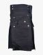Stylish Black Denim Kilt with Leather Straps is a fashionable garment that adds a leather touch to its design for a royal twist. It looks attractive due to its unique craftsmanship and stud style, making it distinctive. You can purchase this designed kilt in your favourite colours in your perfect size at an affordable price. Stylish Black Denim Kilt features a flat apron decorated with rust-free studs. Black leather is styled at its bottom edge with rivets that give it a classy appearance. It comes with buttons on the top-front of the waistline, offering a better and more comfortable fit. A flap is made at its side below the waistline area, which is secured with a stud on the apron. It has a pair of leather straps with buckles on its side, which provides a perfect adjustment for the wearers. A pleated pattern on the back makes your movement easy, and it also shows your association with the ancient Scottish culture. It features a flap pocket on the rear by which you can carry your daily used items like a Cell phone, Wallet, and Keys. Black Denim Kilt with Leather Straps is fabricated with high-quality Denim jeans. It is suitable to wear at Casual outings, Wedding events, and Family gatherings. Order now to add a modern twist to your wardrobe.