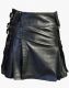 Stylish Black Leather Kilt with Cargo Pockets is a masterpiece of our craftsman that offers a unique design with a fashionable look and practicality. It is versatile because you can wear it at any event, making you distinctive and capturing everyone's attention. It is handmade, and you will purchase it in your exact size and desired colour. Black Leather Kilt is sewn in an attractive pattern with a simple flat apron. It has leather straps that are adjusted with rust-free buckles, allowing you to have a perfect and secure fit throughout the whole day. D-rings are also connected to the waistline, where you can attach lightweight items like keys and chains for a gothic look. Large cargo pockets are made on either side of a kilt that offers extra storage for your belongings, like a cell phone, wallet, and keys. It has a pleated pattern on the back that provides freedom of movement during tough activities like hiking and gaming events. It also comes with a button flap on the back, giving it a unique design and a fashionable look. Stylish Black Leather Utility Kilt is crafted with original leather material. We always deliver quality new products that satisfy customer's needs. It would be an excellent choice to wear at Formal gatherings, Special occasions, and Casual parties. We offer it at a minimal price to make it accessible for every budget. Order now to have an experience with our quality leather kilts.