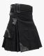 Stylish Black Utility Kilt with Leather Design is a stylish and modern piece of Scottish attire that is especially designed for those who want fashionable look in their garment and make their personality eye-catching on all events. It is also suitable to make a fashion statement at any event due to its unique and attractive design that will capture the attention of every person passing by you. Black Utility Kilt with Leather Design comes with a simple plain flat apron with leather design on the corner side. A pleated pattern is made around the back, adding a traditional twist to its design and offering freedom of movement for the whole day. To fasten the kilt perfectly, it comes with a pair of leather straps on both sides of the waistline for a comfortable adjustment. It has flap pockets with decorated leather straps on either side of a kilt, allowing you to carry your everyday essentials like a Cell phone, Wallet, and Keys. Leather loops are styled on the waist area for holding and wearing belt. Stylish Black Utility Kilt with Leather Design is fashioned with top quality cotton fabric material, ensuring its durability and comfort. It comes with a customization option and we offer it at a reasonable price in your desired sizes and colours You can wear it at Casual outings, Traditional festivals, and Formal meetings. Order it now.