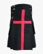 Stylish Black Utility Kilt with Red Cross Strap features an eye-catching design that captures the viewer's attention to different events. It's not only a piece of garment. It is the symbol of Scottish culture and love for the country. This kilt has a flat, plain panel with a red cross sign on the front apron, giving the kilt a simple and charming look. At the same time, traditional pleats are stitched on the rear, which offers style and freedom of movement on different occasions. Silver chains are hung on the back side for a stylish look. It has a waistline with belt loops that make the kilt wear accurately and hold the belt. It comes with large flap pockets on either side for storing your essentials safely. D-rings are attached with each loop for hanging small items like keys and chains. Stylish Black Utility Kilt with Red Cross Strap is uniquely manufactured with drill jeans cotton fabric. Rust-free hardware with excellent quality material is used in this kilt. This kilt is the best option for a unique look at traditional functions, casual events or sports functions. We provide exceptional quality kilts at a cheaper rate to our lovely customers. So don't be late, and order now to get this elegant kilt.