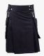 Traditional Mens Black Utility Kilt with detachable Pockets is a costume hand-made and versatile garment designed to meet the latest fashion trends. It is a great choice for those who want to add a modern look to their personality and make an eye-catching view. The Black Utility kilt comes with a simple and decent feature of a plain front apron, while pleated designs are sewn on either side for free movement for the whole day. Traditional Mens Black Utility Kilt has large detachable pockets on both sides for carrying items. These pockets are attached to the lobster hook and connected with the side D-rings. Fastening buttons are used on the top front for kilt fastening, which ensures an accurate fit. Belt loops are styled with eyelets for wearing a belt. You can purchase this kilt in your desired colours and sizes, so select the one that accurately matches your taste. Mens Black Utility Kilt with detachable Pockets is fabricated with pure drill jeans cotton fabric, which ensures its comfort and durability. It is suitable for Scottish and Irish weddings, Outings with friends, and Casual parties. We offer this kilt at a fair price, so order it now.