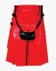 Two-Tone Red Leather Kilt comes with a stylish and striking Scottish kilt garment that offers and allows you to pay homage to their traditions. It is fashionable and functional, making it suitable for birthday functions, cultural events, and other trendy occasions. The combination of red and black leather makes it versatile and adds an eye-catching impact that captures everyone’s attention. Red leather kilt has a simple and decent plain front apron with black fastening buttons on the top-front waist for kilt closure, which makes excellent contrast. Pleated designs are styled on the back and side of the kilt for easy movement throughout the day. Rivet buttons are decorated on the large side pockets to make the dress more stylish. Pockets store lightweight items like cards, keys, and cell phones. A black and red detachable pocket hung on the front apron for carrying items. Pure leather straps on both sides for kilt adjustment with the help of buttons. We offer a customization option so that you will get a kilt in your desired colours and exact size. Two-Tone Red Leather Kilt is crafted with top-quality leather fabric and rust-free hardware. It is handmade, and we will deliver this kilt to your doorstep at an affordable price. Order now.