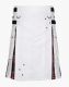 White and Black Stewart Tartan Hybrid Kilt is a combination of Scottish ancient traditions and a modern design. It is specially designed for traditional enthusiasts who want to look unique and fashionable while expressing their love for Scottish traditions. We offer this kilt in various tartan patterns and fabric color options, so anyone can purchase this kilt according to their preferences. White and Black Stewart Tartan Utility Kilt is designed in a distinctive pattern with a flat apron and pleated rear. It has leather straps on either side of the waistline area that offer a perfect and comfortable adjustment throughout the whole day's wear. It has studs that are decorated on the front which makes it more attractive. Large pockets are styled on both sides of a kilt, providing enough storage for your everyday essentials like a Cell phone, Wallet, and Keys. These pockets have button flaps that also secure your essentials from slipping out to the pockets. Its traditional pleated rear helps in movement during tough adventures like games, hiking, and many others. White and Black Stewart Tartan Kilt is crafted with 100 % pure material, making it durable and also ensuring its longevity. It is suitable to wear at Scottish and Irish weddings, Formal meetings, Traditional festivals, and Highland gaming events. Order now to buy this kilt at a reasonable price in your desired size.